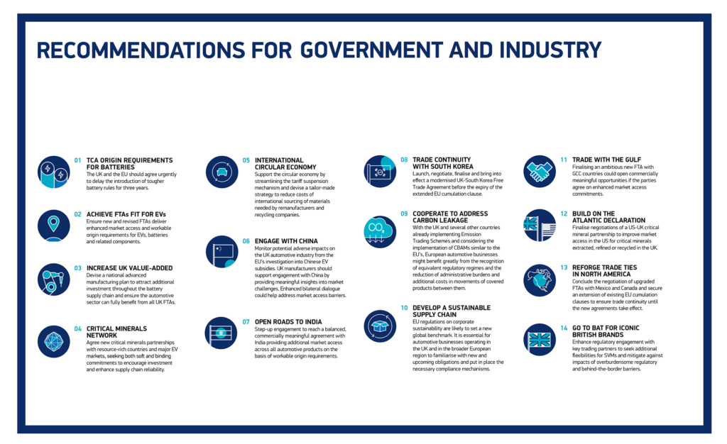 Safeguarding trade with the EU is critical but we must remain focused on trade around the world. This means addressing many challenges. Ensuring new and revised free trade agreements, especially with India, South Korea, Canada, Mexico and the Gulf states. Delivering enhanced market access and workable origin requirements for EVs, batteries and related components. Building on recent investment wins to develop a sustainable battery and critical mineral supply chain in Britain. Improving support for remanufacturing and recycling. Enhancing regulatory engagement with key trading partners so our small volume manufacturers remain competitive. And remaining alert to any adverse impacts from global trade tensions.